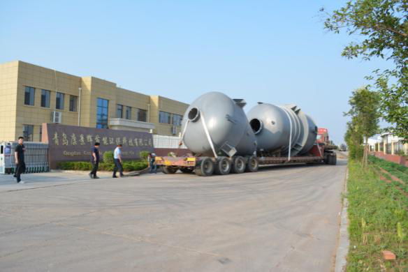 6月26日,青島康景輝節(jié)能環(huán)保科技有限公司設(shè)計、生產(chǎn)、制造的三效鈦材蒸發(fā)器裝貨完畢,如期發(fā)往青島某化工(集團)有限公司。